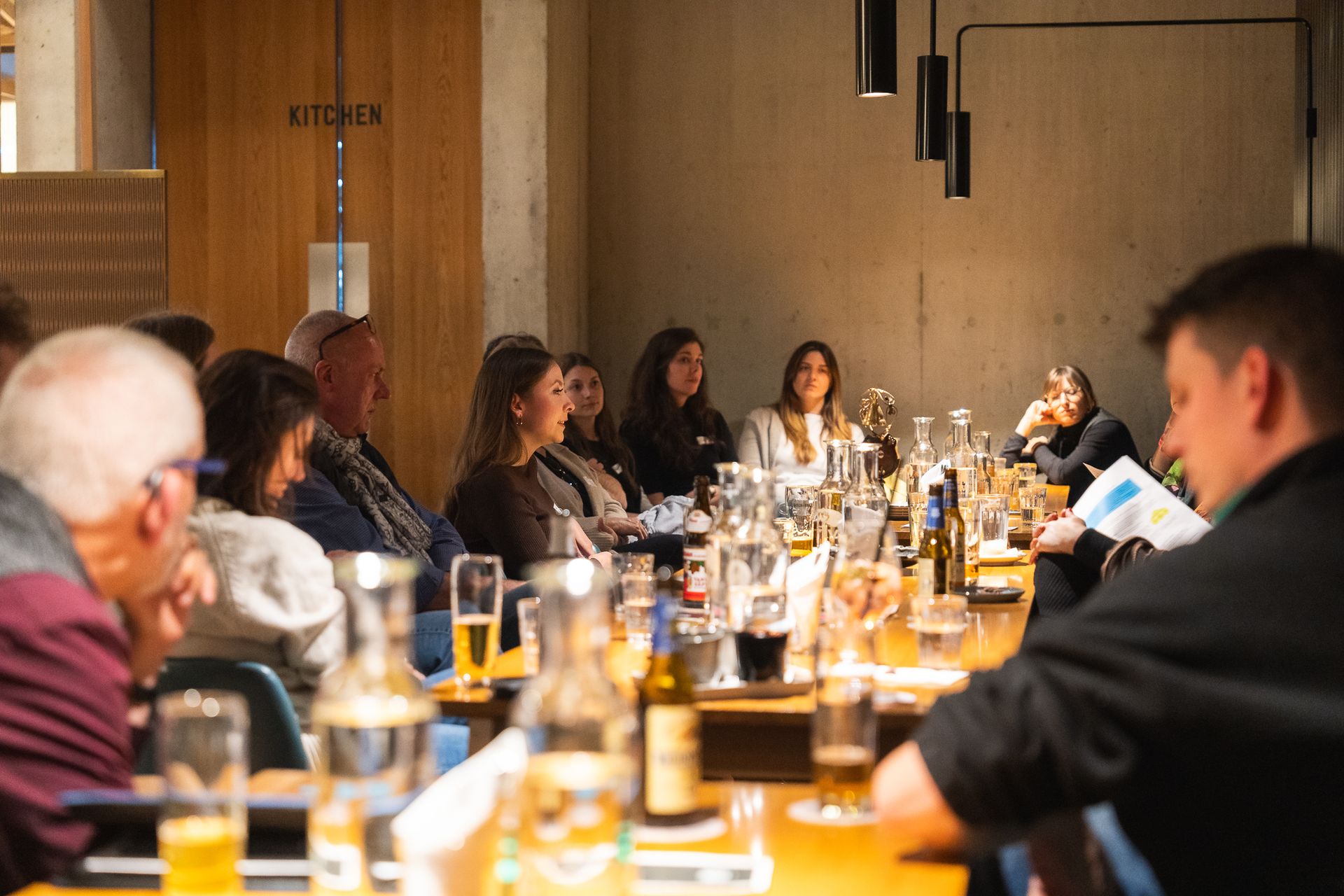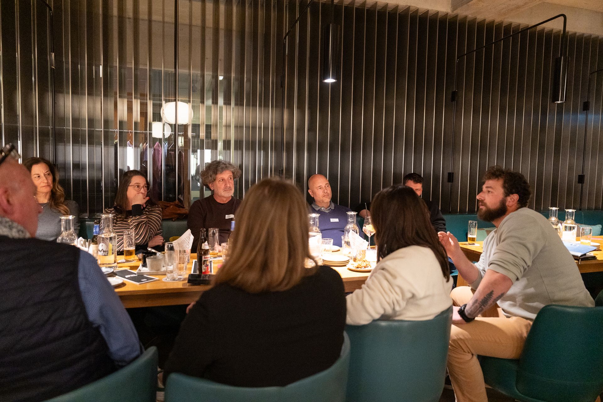Melina Horni, Leiterin HR bei der Krafft Gruppe, ermöglichte den Gästen beim Stammtisch in der Nomad Eatery Einblicke in die Entstehung des Wegweisers. Sie teilte ihre Erfahrungen mit dem neuen Instrument und zeigte dessen Nutzen für die Organisation auf.
